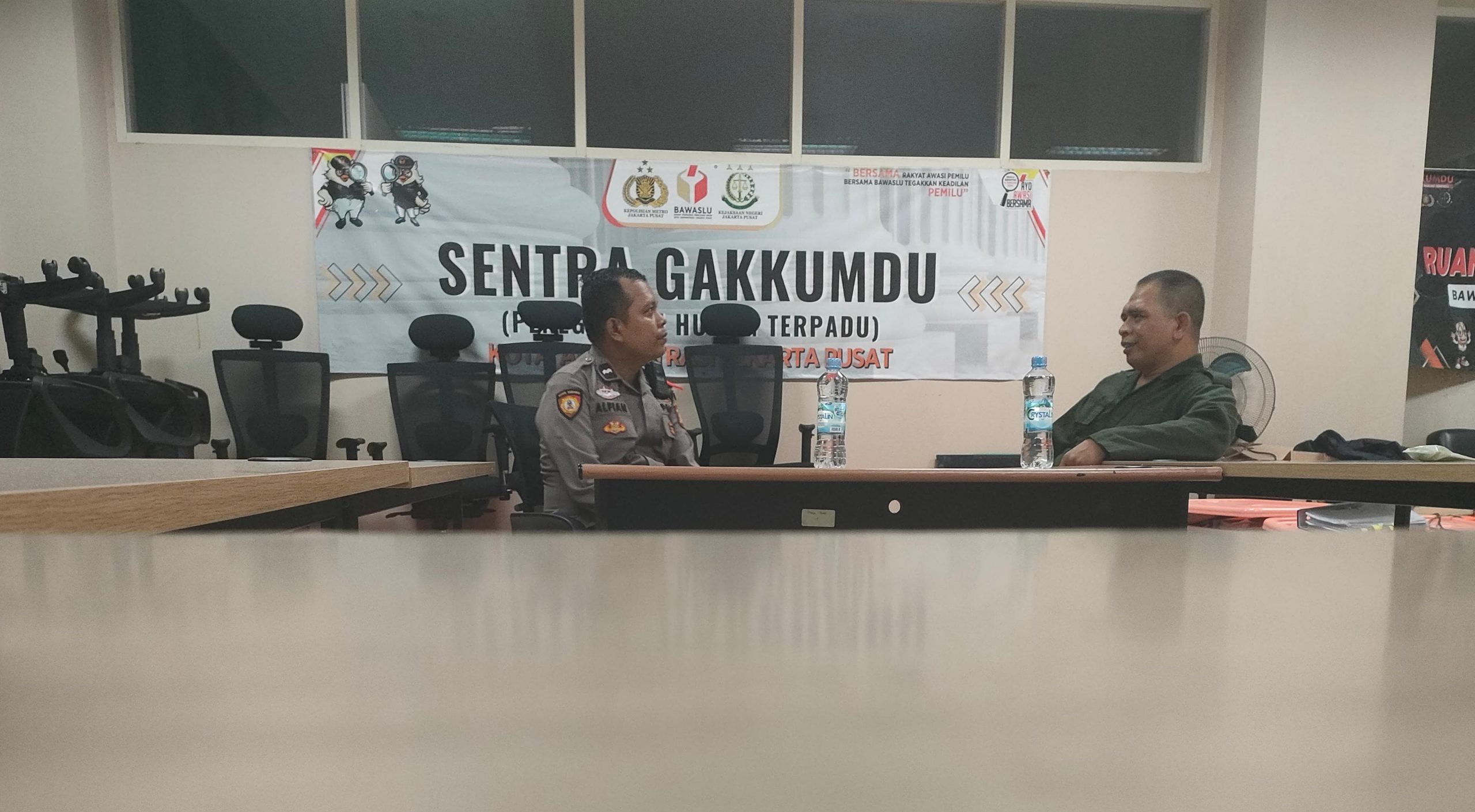 Aipda Alfian selaku Petugas Patroli melaksanakan patroli dan sambangi Haris petugas Bawaslu Kota Administrasi Jakarta Pusat berikan imbauan kamtibmas agar selalu membantu untuk menjaga keamanan dan ketertiban, agar selalu koordinasi dan monitoring perkembangan situasi.