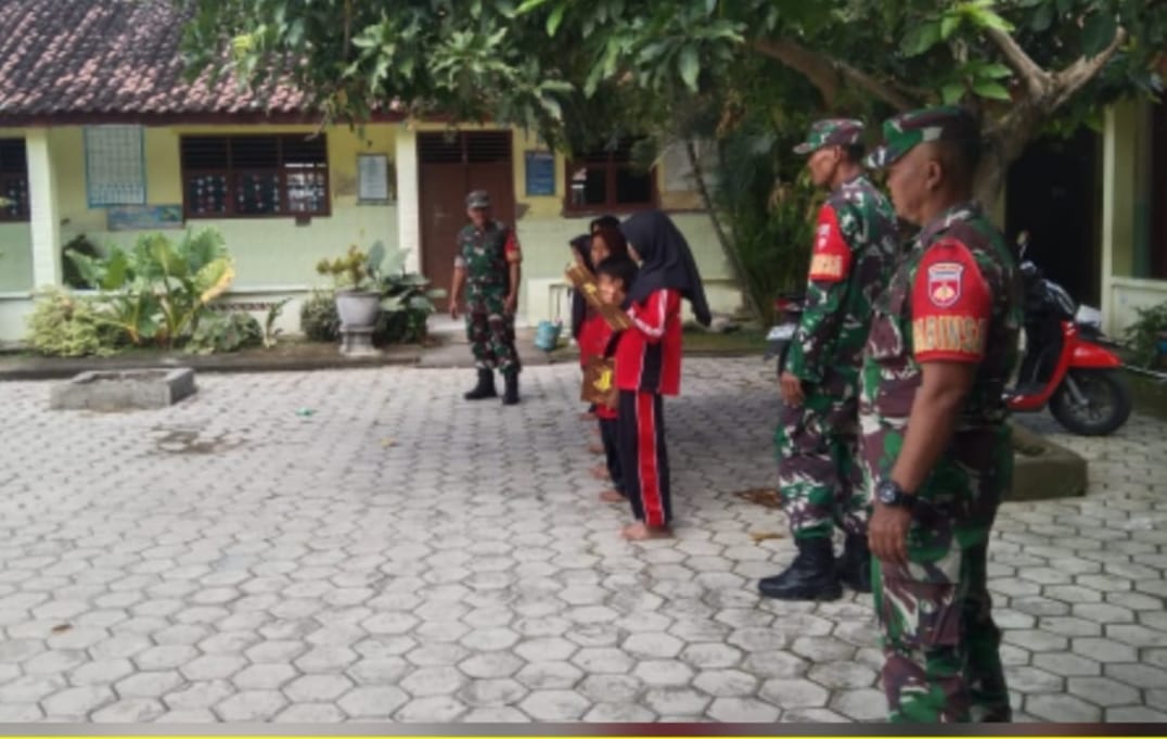 Sragen,Porosnusantara.com- Serda Mustofa Babinsa Desa Sambungmacan dan anggota Koramil 09/Sambungmacan Kodim 0725/Sragen Kodim 0725/Sragen, melatih petugas upacara bendera bagi siswa. Kali ini kegiatan berlangsung di SDN Sambungmacan, Selasa (24/02/2025)