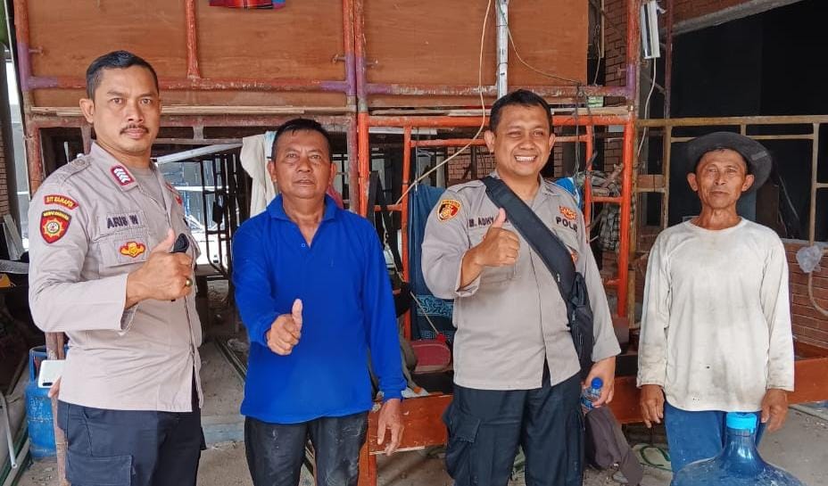 Selanjutnya Aipda H. Adhy saling berinteraksi dengan para pekerja agar selalu tingkatkan pengawasan saat pembangunan jangan sampai terjadi kelalaian dalam perbaikan dan waspada setiap barang yang masuk dan keluar agar tidak terjadi pencurian.
