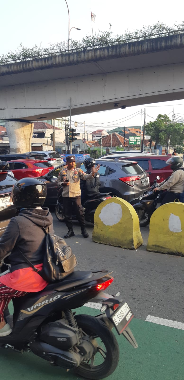 Johar Baru, Kapolsubsektor Tanah Tinggi Aiptu Antonius AW, melaksanakan pengaturan arus lalu lintas pagi hari di TL Galur, jalan Letjend Suprapto RW 11 Kelurahan Tanah Tinggi, Kecamatan Johar Baru Jakarta Pusat. Kamis (25/7/2024).