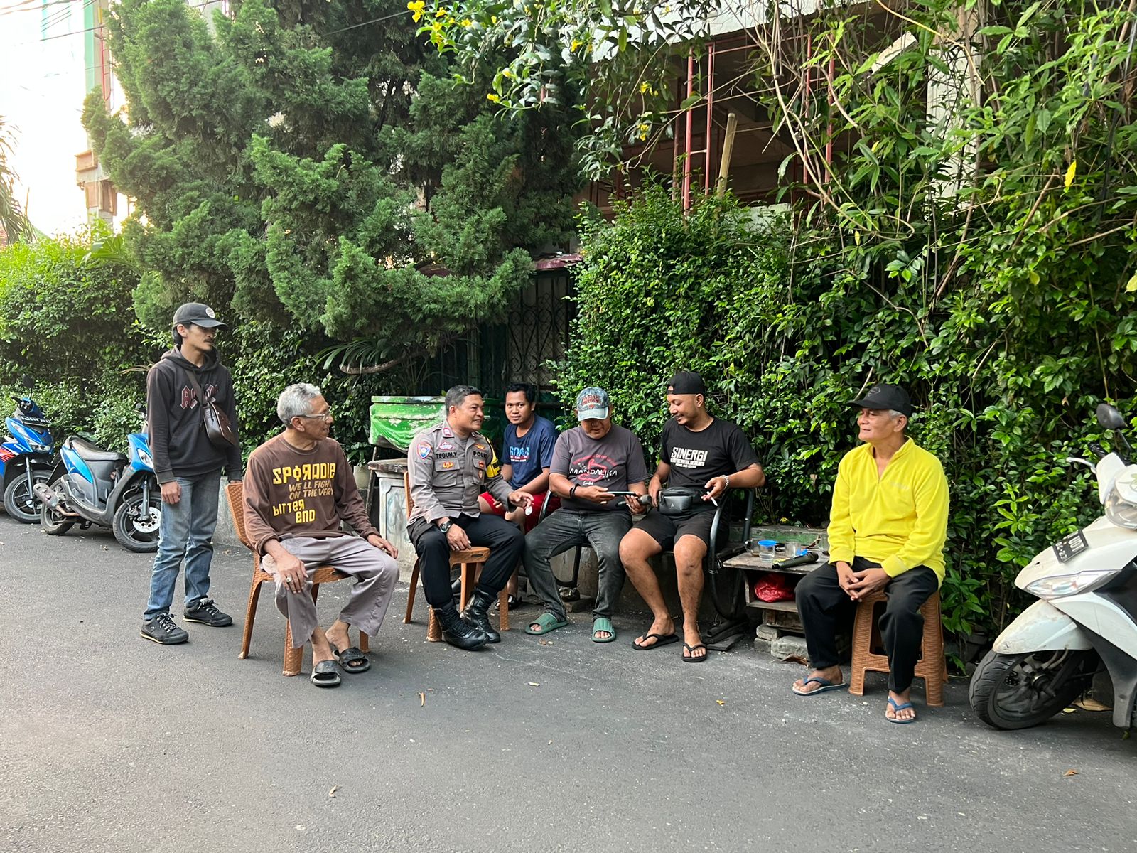Aiptu Teguh bersama Ketua RW untuk silahturahmi bertemu Adek, Cs selaku FBR Gelora memberikan imbauan kamtibmas agar menjaga lingkungan tetap aman dan agar tidak melakukan kegiatan yang melanggar hukum dan tetap ikut menjaga ketertiban serta turut menjaga kampung yang aman dan damai.