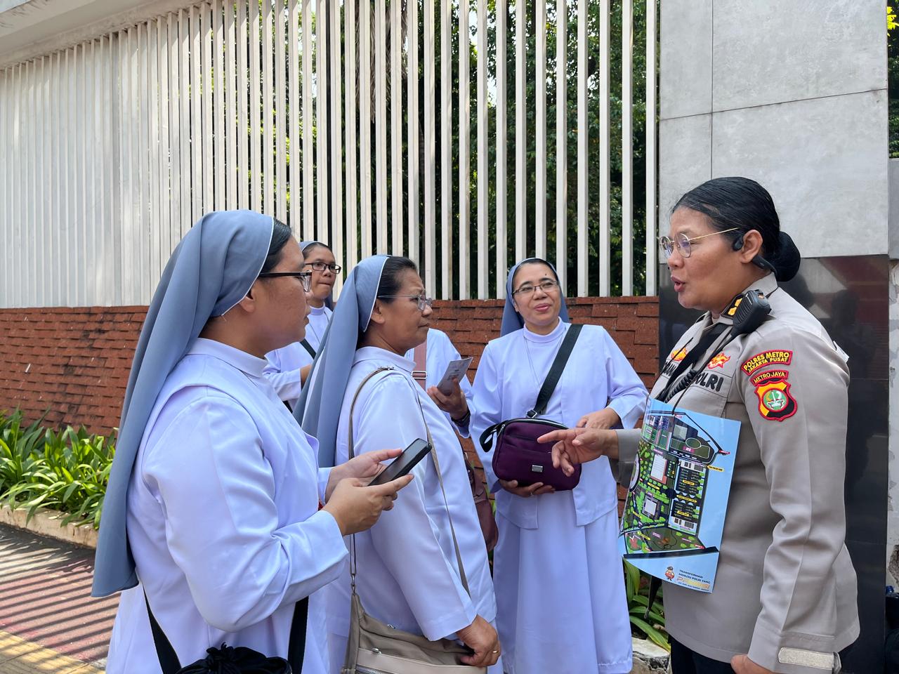 “Kami melaksanakan pengamanan dengan membawa peta (Lay Out) untuk memudahkan dan memberikan petunjuk kepada warga yang akan mengikuti acara Misa Apostolik di GBK Senayan,” tutur Rosiana.