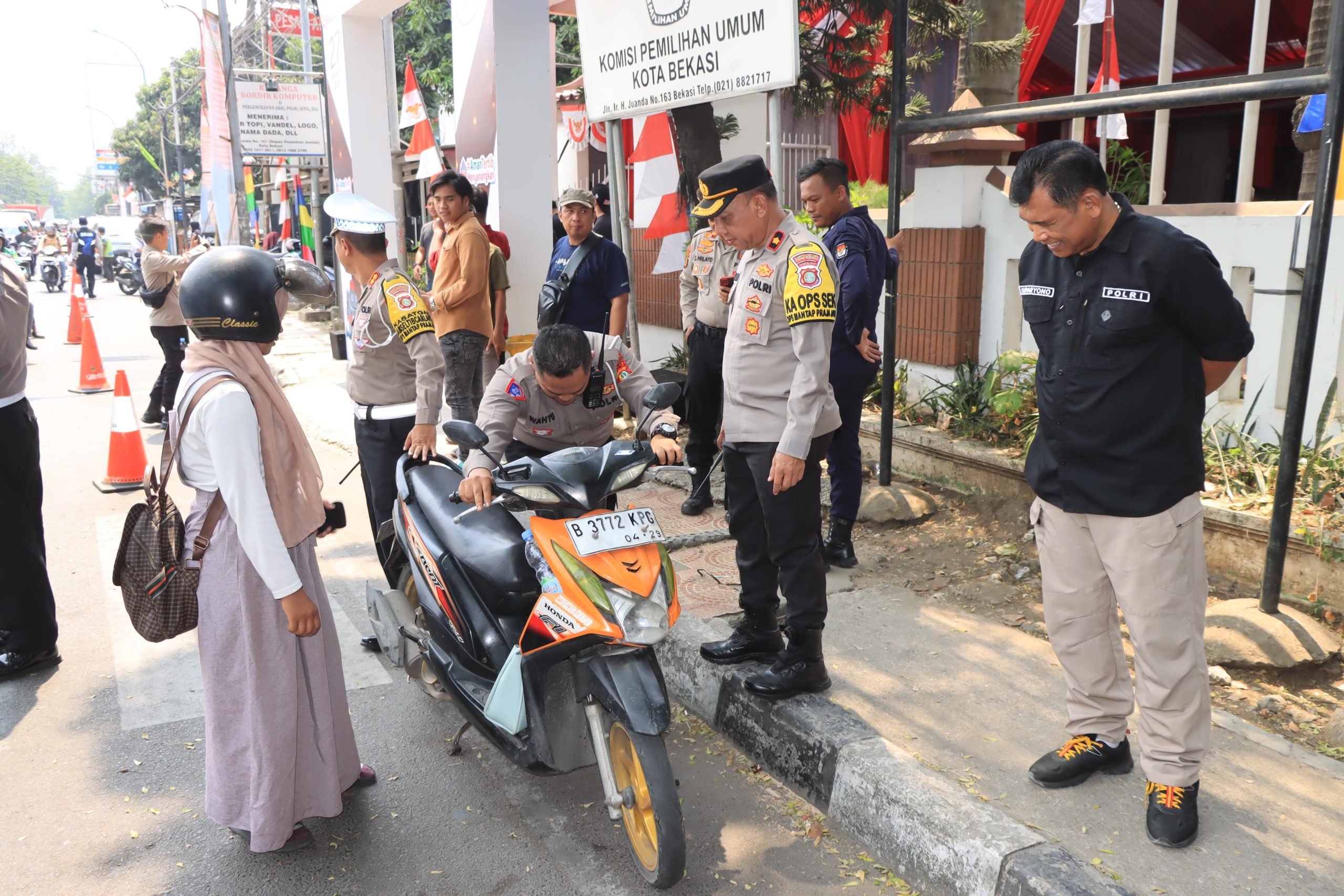 JAKARTA | POROSNUSANTARA.COM – Aksi heroik ditunjukkan oleh Bripka Wahyu, anggota Satuan Lalu Lintas Polres Metro Bekasi Kota. Pada Selasa (27/8) sekitar pukul 11.00 WIB, saat sedang bertugas mengamankan Kantor KPUD Kota Bekasi di Jalan Raya H. Juanda, Bripka Wahyu dengan sigap membantu seorang pengendara sepeda motor yang mengalami mogok.