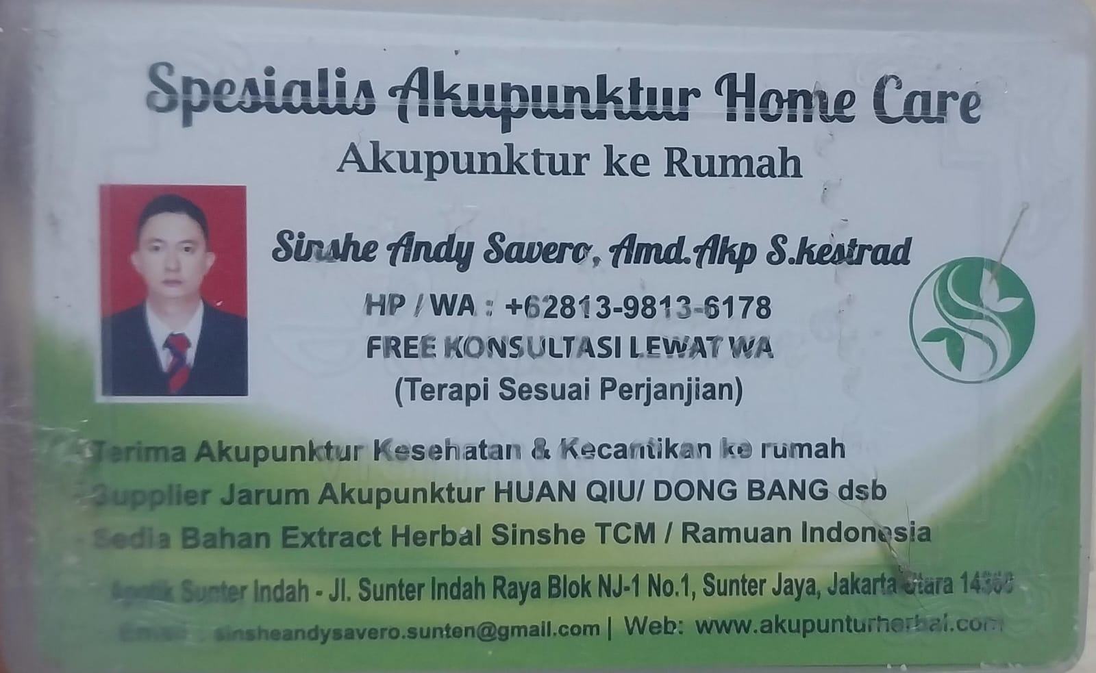 Shinse Andy yang khusus melayani ke tempat klien atau Home.Care sudah berpengalaman dengan keahliannya tersebut. Selain pengobatan atau kesehatan juga memberi layanan akupunktur kecantikan. Jika ada yang ingin ditanyakan atau dikonsultasikan gratis bisa via wa ke : 0813 9823 6178