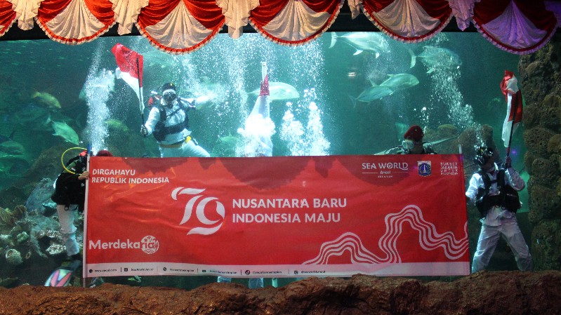 Selain itu, upacara pengibaran bendera juga akan dilaksanakan di Sea World Ancol. Berbeda dengan upacara pada umumnya yang dilaksanakan di daratan, di sini pengibaran bendera dilakukan di dalam air di aquarium utama Sea World di antara ratusan ikan. Kegiatan ini memang menjadi agenda rutin tahunan Sea World dan selalu menjadi daya tarik bagi pengunjung. Pengunjung bisa menyaksikan pada 17 Agustus pukul 10.00 WIB. Setelah itu akan ada juga pengibaran bendera berukuran besar yang akan berlangsung hingga 18 Agustus 2024.
