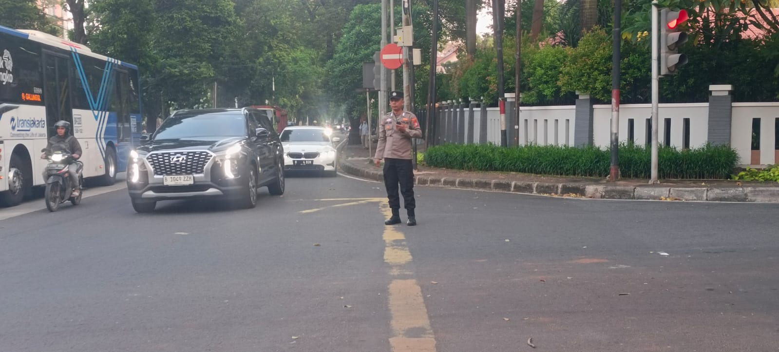 JAKARTA | POROSNUSANTARA.COM – Bripka Ari Novi memantau persimpangan jalan Madiun dan jalan Latuharary guna memberikan kelancaran arus lalulintas baik massa aksi dan warga masyarakat supaya terjadi penupukkan yang menyebabkan kemqcetan Jakarta Pusat. Sabtu (3/8/2024).