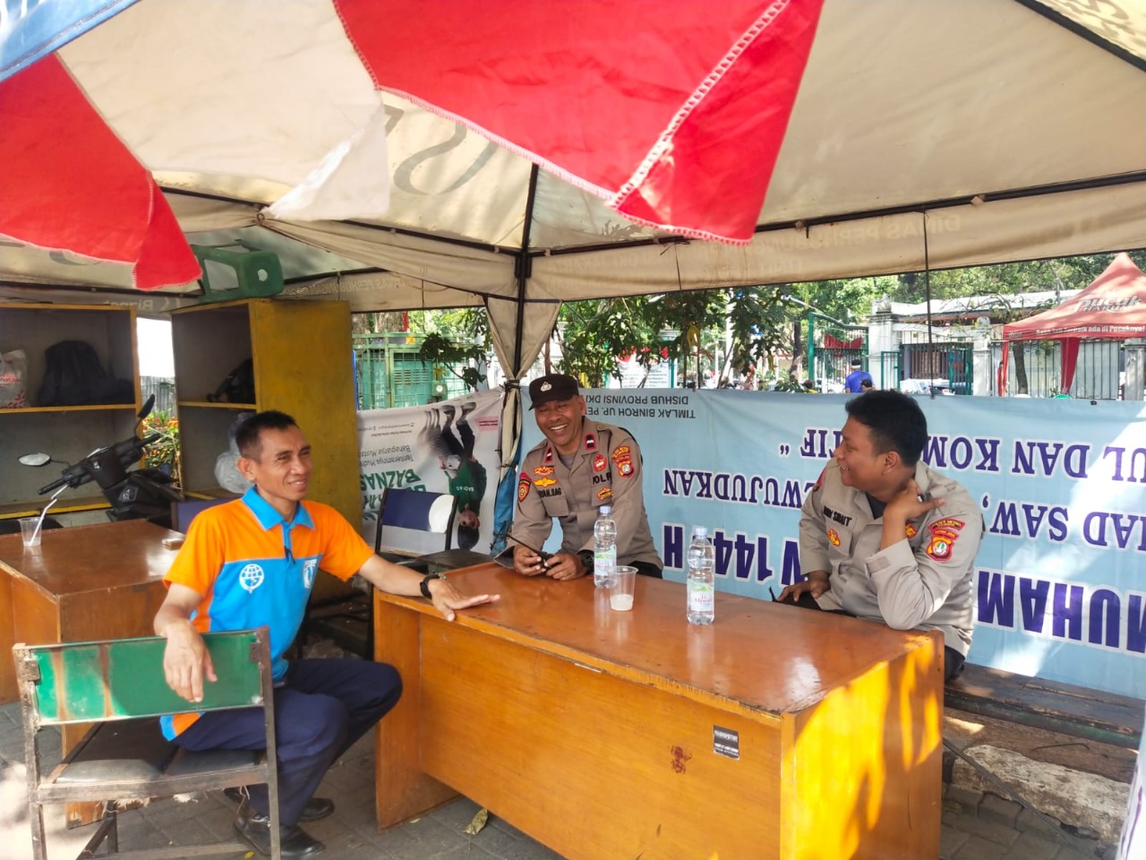 Bertemu dengan Petugas Unit Pengelola Perparkiran Dinas Perhubungan Bapak Asep menyampaikan himbauan dan pesan kamtibmas.