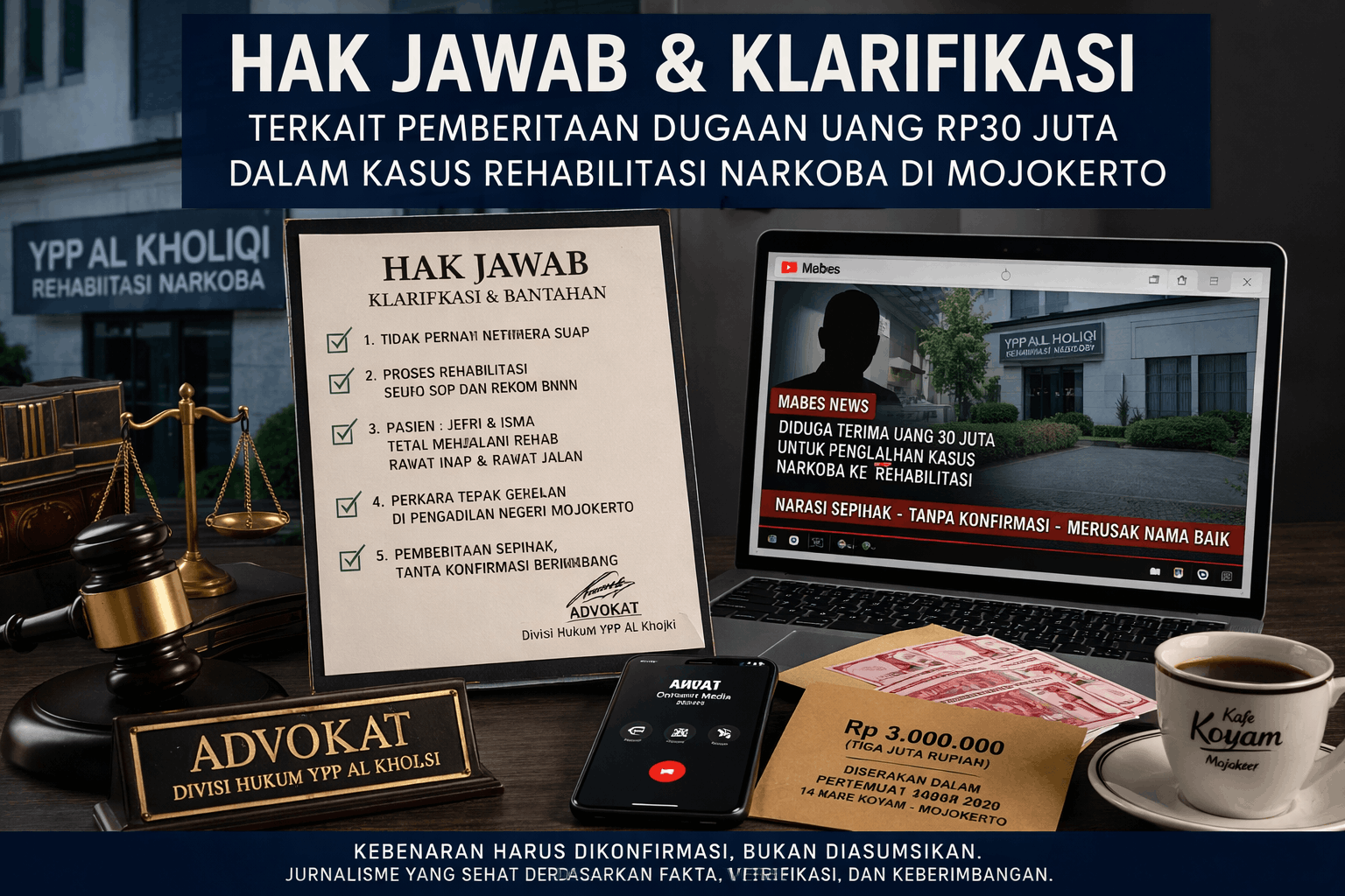 Peristiwa bermula pada 10 Maret 2026, saat Wahyu Suhartatik, SH, dihubungi oleh seseorang yang mengaku bernama A sebagai wartawan media online. Kontak awal tersebut dikemas sebagai upaya konfirmasi terkait biaya rehabilitasi narkoba.