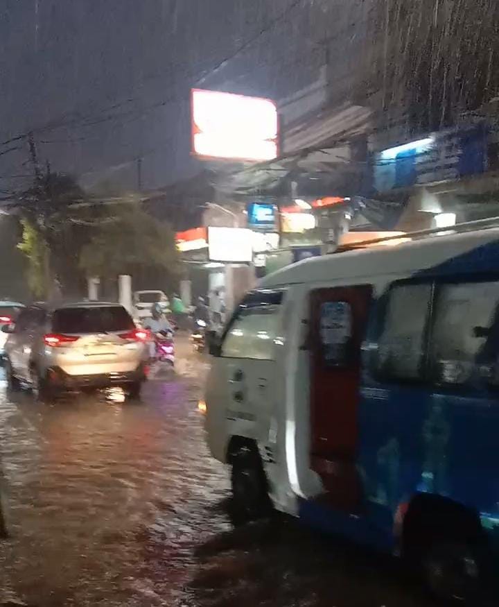 Selain itu, beberapa kendaraan mogok karena terjebak genangan air yang cukup tinggi. Warga pun terpaksa berjalan kaki melewati genangan yang mencapai lutut orang dewasa.