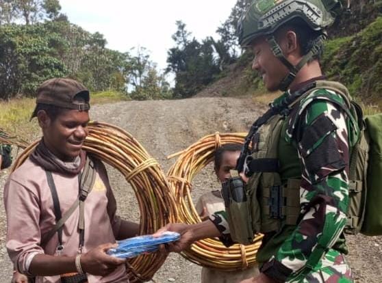 Satgas Yonif 509 Kostrad melalui TK Bilogai melaksanakan bagi-bagi alas kaki dan ROSITA (Memborong Hasil Tani) terhadap masyarakat yang rutin melintas di depan TK Bilogai. Minggu (26/05/2024).