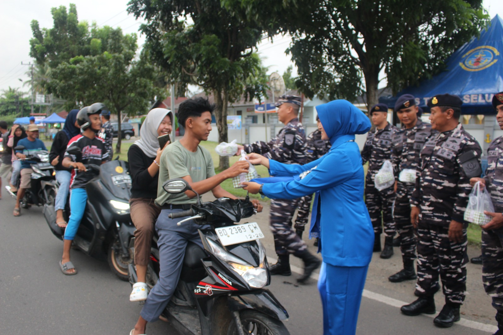 BENGKULU | POROSNUSANTARA.COM Ramadan bulan penuh berkah, banyak kesempatan bagi umat Islam untuk berbagi dengan sesama. Seperti yang dilakukan Pangkalan TNI Angkatan Laut (Lanal) Bengkulu, yaitu berbagi takjil kepada pengendara yang melintas di depan Mako Lanal Bengkulu, Senin (10/3/2025).