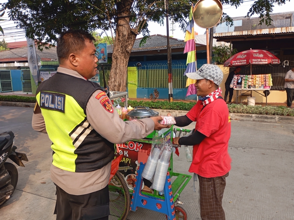 Dalam melaksanakan patroli Bripka Suroto memberikan sedikit rejeki berupa nasi bungkus kepada warga masyarakat dan petugas pos kamling yang ditemui.
