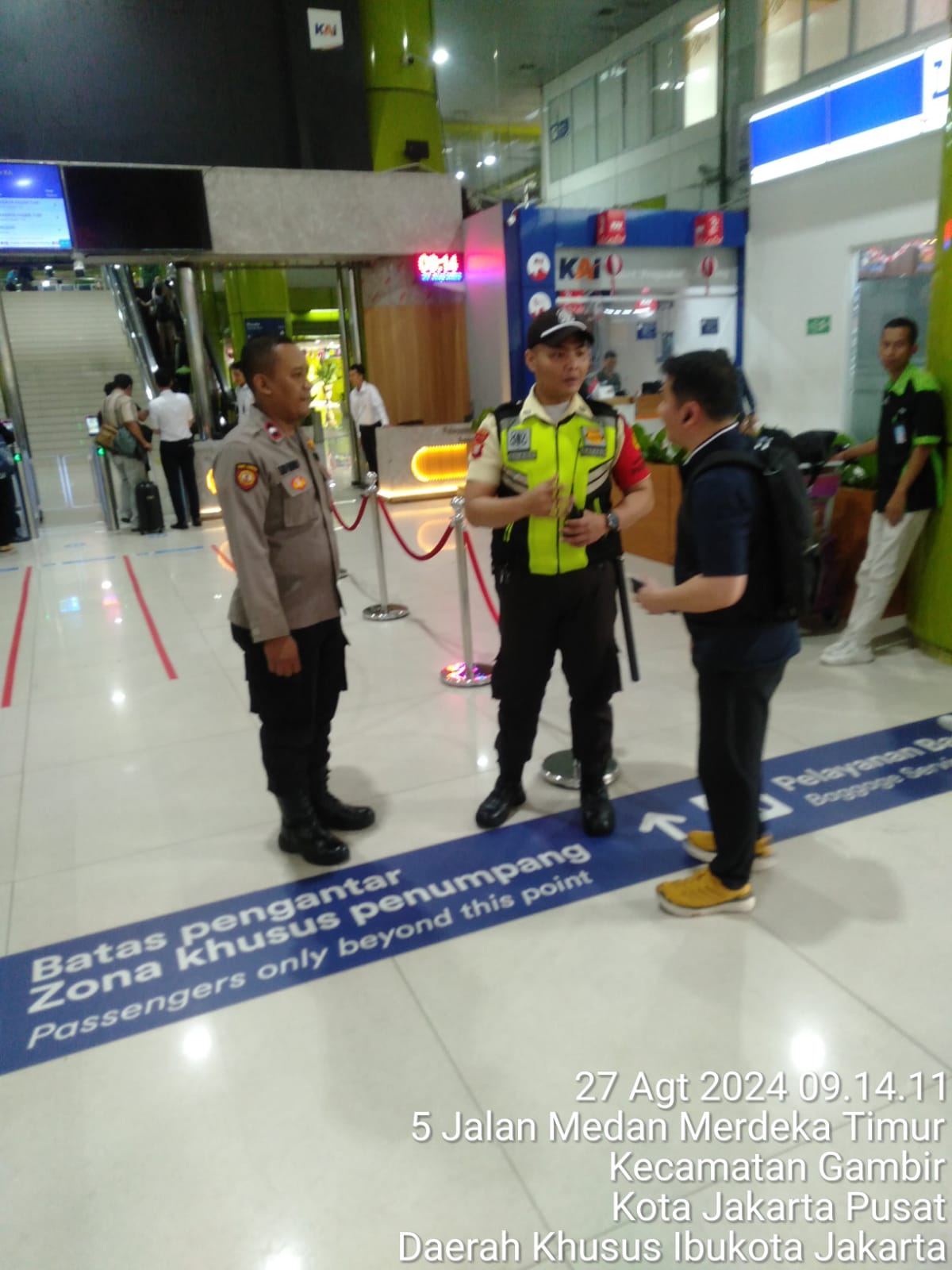 JAKARTA | POROSNUSANTARA.COM – Anggota Polsubsektor Monas Timur Polsek Metro Gambir Aipda Eko Endro melaksanakan Sambang dan Patroli Dialogis di Stasiun Besar Gambir, Jl. Medan Merdeka Timur, Gambir, Jakarta Pusat. Selasa (27/8/2024).