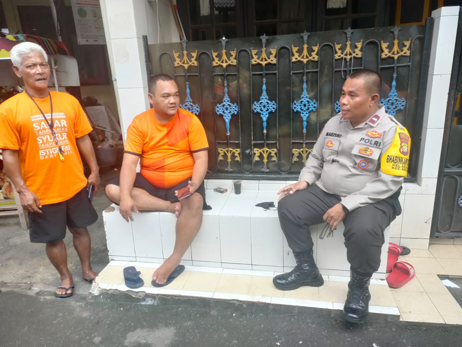 Meneruskan pesan Kapolres Metro Jakarta Pusat Kombes Pol Susatyo Purnomo Candro melalui Aipda Marzuki agar turut serta bersama warga untuk menjaga keamanan dan ketertiban masyarakat dengan mengajak warga ikut peran aktif menjaga kamtibmas dilingkungan nya masing masing.