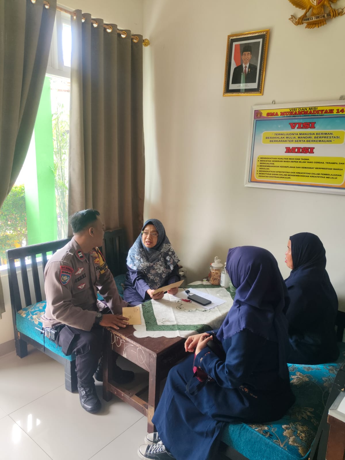 Patroli Dialogis dan kunjungan tersebut sebagai Bhabinkamtibmas untuk memberikan rasa aman. selanjutnya Aiptu Heri bertemu dengan Guru sambil berinteraksi sampaikan imbauan kamtibmas agar selalu memberikan informasi tentang kamtibmas dengan lakukan deteksi dan lakukan pemantauan dan monitoring terhadap siswa/i jangan sampai terjadi bullying dan tawuran.