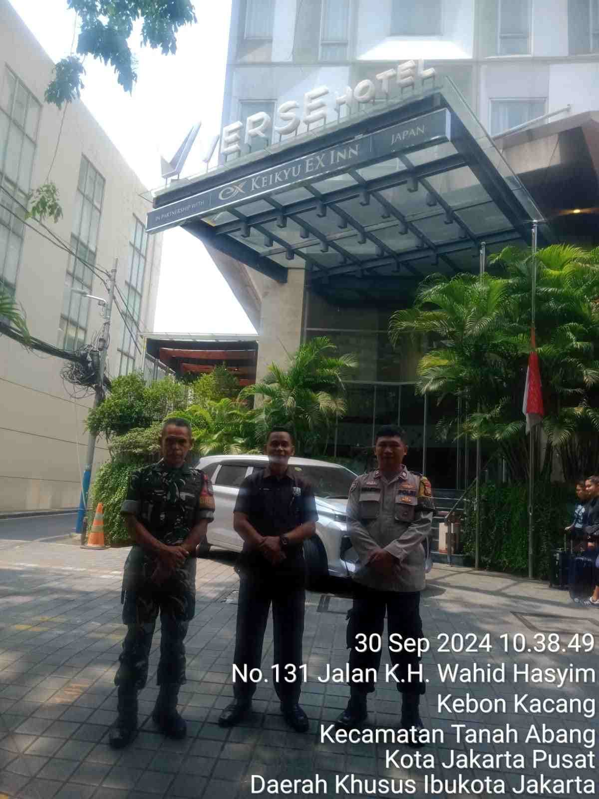 JAKARTA | POROSNUSANTARA.COM – Aiptu Suhartono Bhabinkamtibmas Kelurahan Kebon Kacang dan Babinsa melaksanakan Patroli Dialogis dan sambangi Security Hotel Verse Jalan Wahid Hasyim RT 09/02 Kelurahan Kebon Kacang Kecamatan Tanah Abang Jakarta Pusat. Senin (30/09/2024).