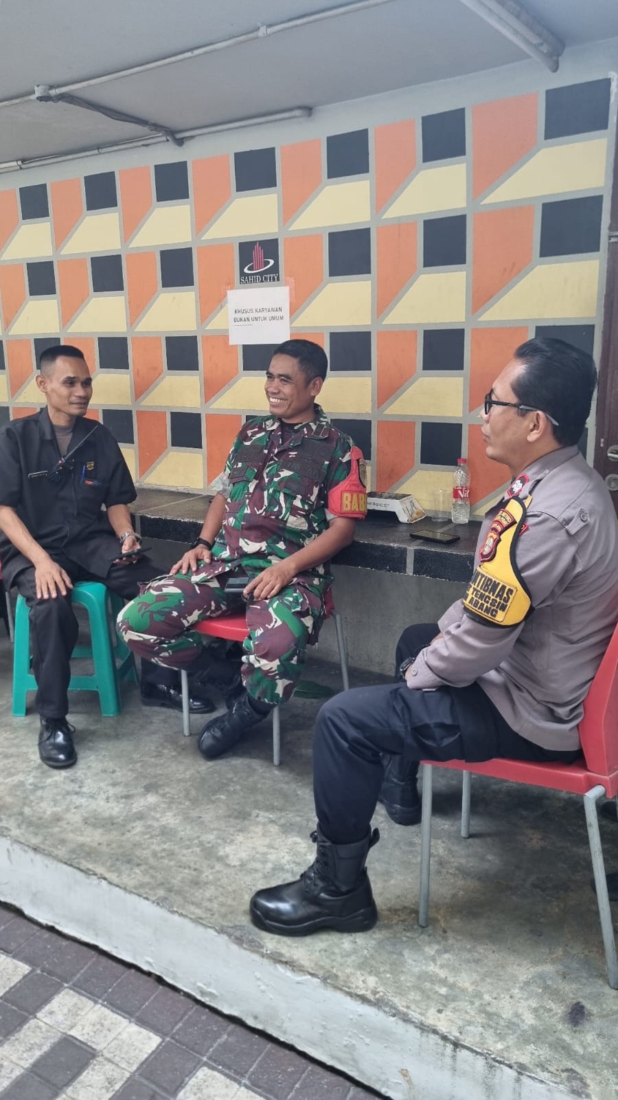 JAKARTA | POROSNUSANTARA.COM – Aiptu Suparmin selaku Bhabinkamtibmas Kelurahan Karet Tengsin bersama Babinsa melaksanakan patroli dialogis dan sambangi pihak keamanan di Kawasan Hotel Sahid City Jalan Jenderal Sudirman Kelurahan Karet Tengsin Kecamatan Tanah Abang Jakarta Pusat. Senin (12/08/2024).