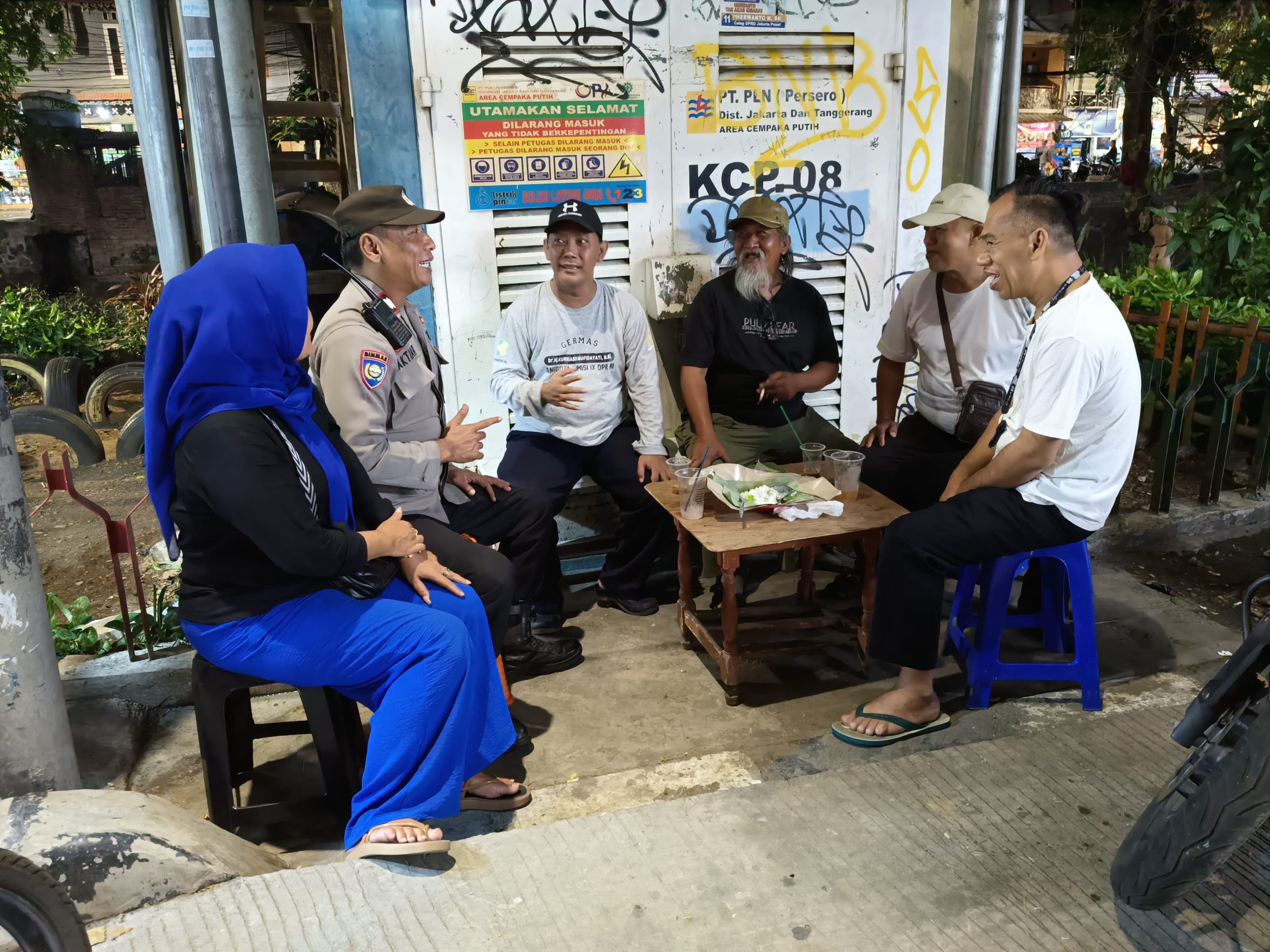 JAKARTA | POROSNUSANTARA.COM – Bhabinkamtibmas Kelurahan Galur Aiptu Baktiar Emri, Sambang Dialogis ke Pos RW Cooling System dengan LMK dan Ketua RT di Jalan Galur Selatan RT 03 RW 02 Kelurahan Galur, Kecamatan Johar Baru Jakarta Pusat. Senin malam (17/09/2024).
