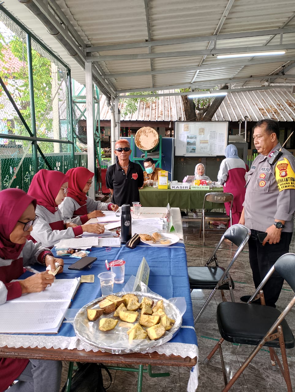 bmas Kelurahan Harapan Mulya Aiptu Bambang melakukan monitoring kegiatan Posyandu Balita dan Lansia di Pos Sekertariat Rw.02 Kelurahan Harapan Mulya Kecamatan Kemayoran Jakarta Pusat. Selasa (2/7/2024).