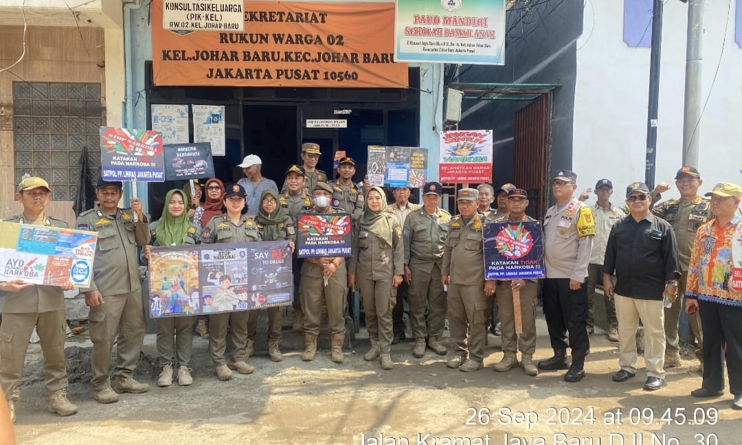 Dengan berjalan kaki dari rumah kerumah masuk gang keluar gang pemukiman warga Bhabinkamtibmas Kelurahan Johar Baru Aiptu Sunarto bersama Abdurahman Hakim Man Pol. PP kecamatan, Kasatgas Pol. PP., Buchaeri, dan stakeholder wilayah melakukan woro-woro sosialisasi bahaya Narkoba dengan menggunakan Speaker TOA, Bender dan Spanduk untuk mengajak warga masyarakat selalu waspada penyalahgunaan narkoba apalagi bagi anak anak kita harus kita awasi agar terhindar dari bahaya Narkoba.