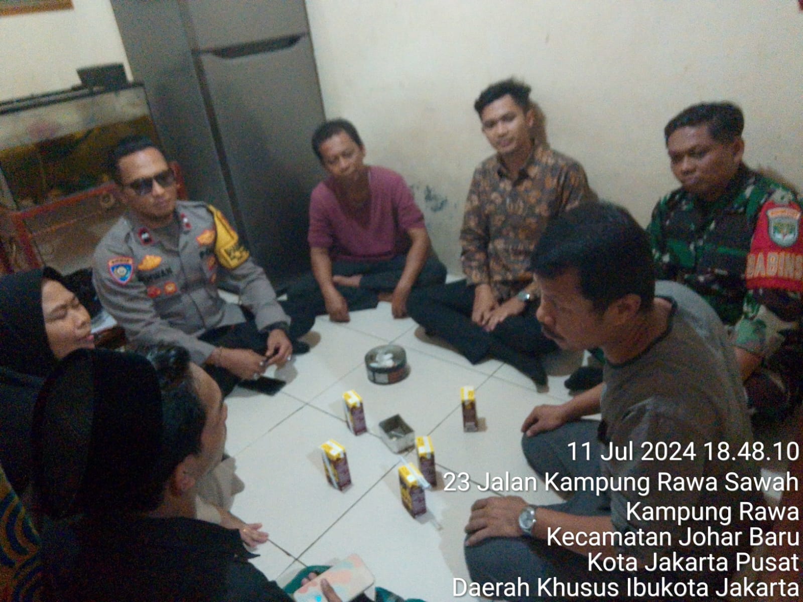 JAKARTA | POROSNUSANTARA.COM – Bhabinkamtibmas Kelurahan Kampung Rawa Aipda Ikhwan Mulyadi, SH., bersama Babinsa Koramil Serda Trynaldi melakukan sambang dialogis di Pemukiman Warga jalan Rawa Sawah IV RT 06 RW 02 Kelurahan Kampung Rawa, Kecamatan Johar Baru Jakarta Pusat. Kamis (11/7/2024)