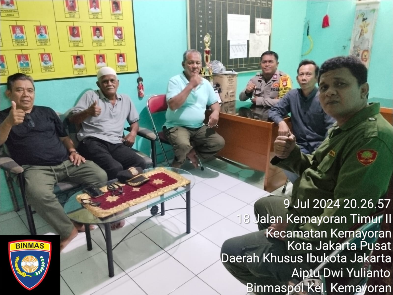 Jakarta | POROSNUSANTARA.COM – Bhabinkamtibmas Kelurahan Kemayoran Aiptu Dwi melaksanakan kegiatan Sambang dan Patroli Dialogis di Pos Kamling RW.08 Kelurahan Kemayoran Kecamatan Kemayoran Jakarta Pusat. Rabu (10/7/2024).