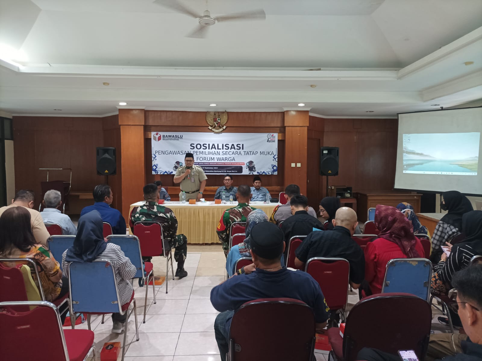 JAKARTA | POROSNUSANTARA.COM – Bhabinkamtibmas Menteng Aiptu Robby Danan Jaya dan Bhabinkamtibmas Gondangdia Aiptu Kamidi Mengikuti Sosialisasi Pengawasan Pemilu Secara Tatap Muka di Kantor Kelurahan Menteng Di Aula Lt. 3 Jalan Anyer Menteng Jakarta Pusat Kamis, (19/9/2024).