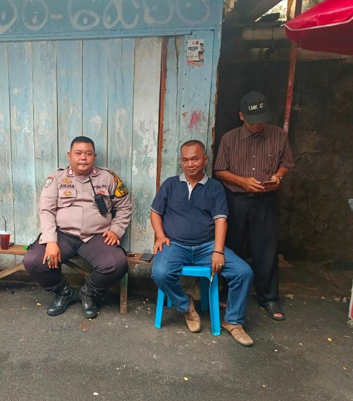 Jakarta | POROSNUSANTARA.COM – Bhabinkamtibmas Kelurahan Petamburan Bripka Ginanjar S.P Sambangi Pemukiman warga bertemu dengan Yani Ketua RT 02, Edi Chamyadi LMK RW 07 dan Warga di Jalan Jati Petamburan RT 02 RW 07 Kelurahan Petamburan Kecamatan Tanah Abang Jakarta Pusat. Senin (24/6/2024).