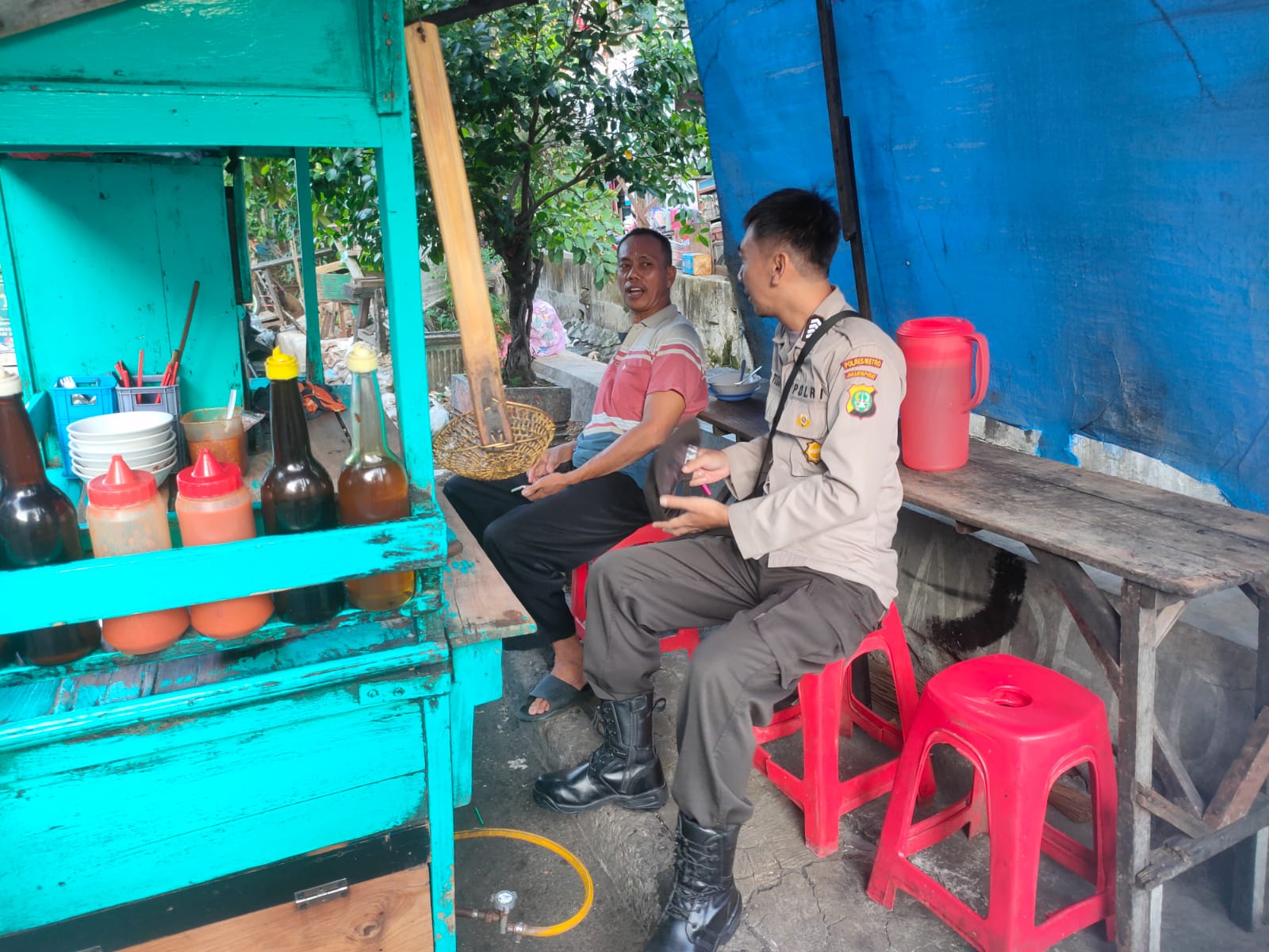 Kepada Edi selaku pedagang kaki lima mie ayam Ripto Teguh Purnomo menyampaikan pesan Kapolres Metro Jakarta Pusat Kombes Pol Susatyo Purnomo Condro, S.H., S.I.K., M.Si., agar bersama sama menjaga keamanan dan ketertiban masyarakat.