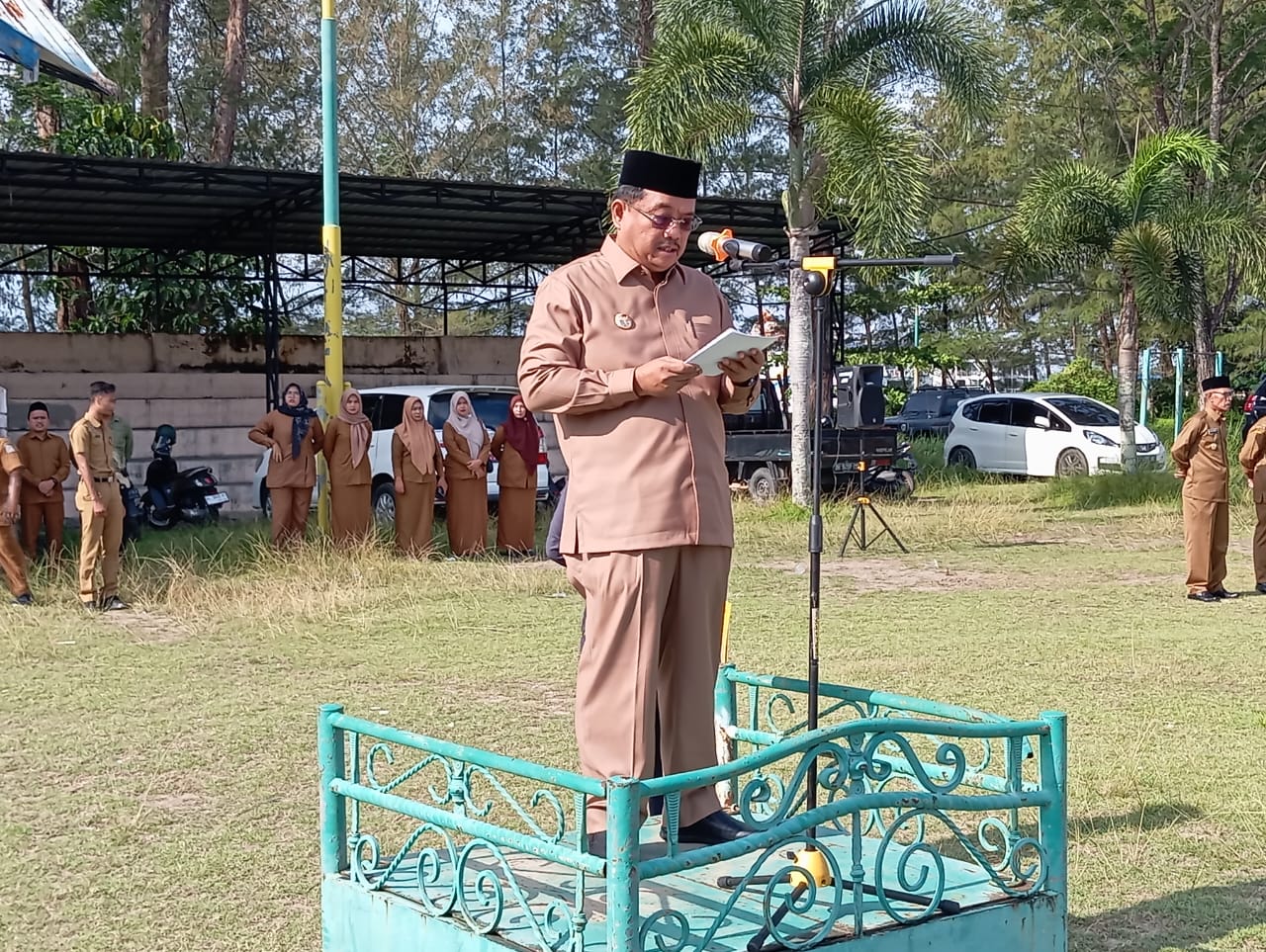 Aceh Singkil| POROSNUSANTARA.COM – Bupati dan wakil bupati baru terlantik H.Safriafi SH.dan H.Hamzah Sulaiman SH masa bakti 2025/2030 melaksanakan Apel gabungan perdana di lapangan Alun Alun pulau sarok Aceh singkil.senin 17 /2/2025