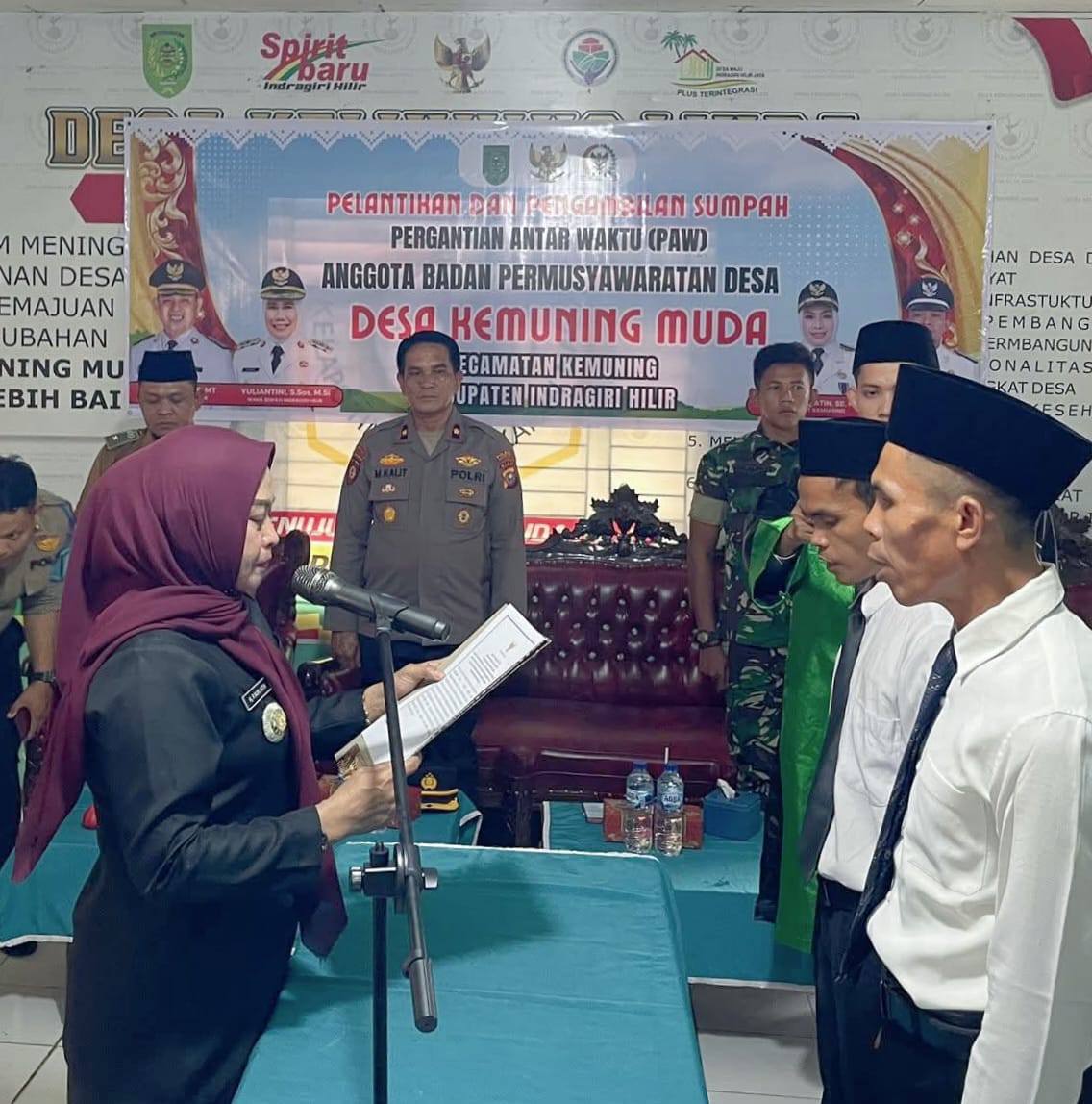 KEMUNING | POROSNUSANTARA.COM – Pemerintah Kecamatan Kemuning melaksanakan Pelantikan dan Pengambilan Sumpah Pergantian Antar Waktu (PAW) Anggota Badan Permusyawaratan Desa (BPD) Kemuning Muda untuk sisa masa bakti 2021–2029. Kegiatan berlangsung khidmat di Kantor Desa Kemuning Muda, Selasa (3/2/2026).