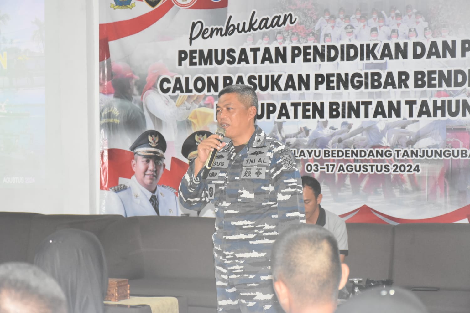 BINTAN |POROSNUSANTARA.COM – Bertempat di Hotel Melaju Bedendang, Komandan Lanal Bintan Letkol Laut (P) Eko Agus Susanto, S.E., M.M., memberikan bekal Materi Wawasan Kebangsaan Terhadap Persatuan dan Kesatuan Bangsa kepada Calon Paskibraka Kabupaten Bintan Tahun 2024, Sabtu (10/08/2024).