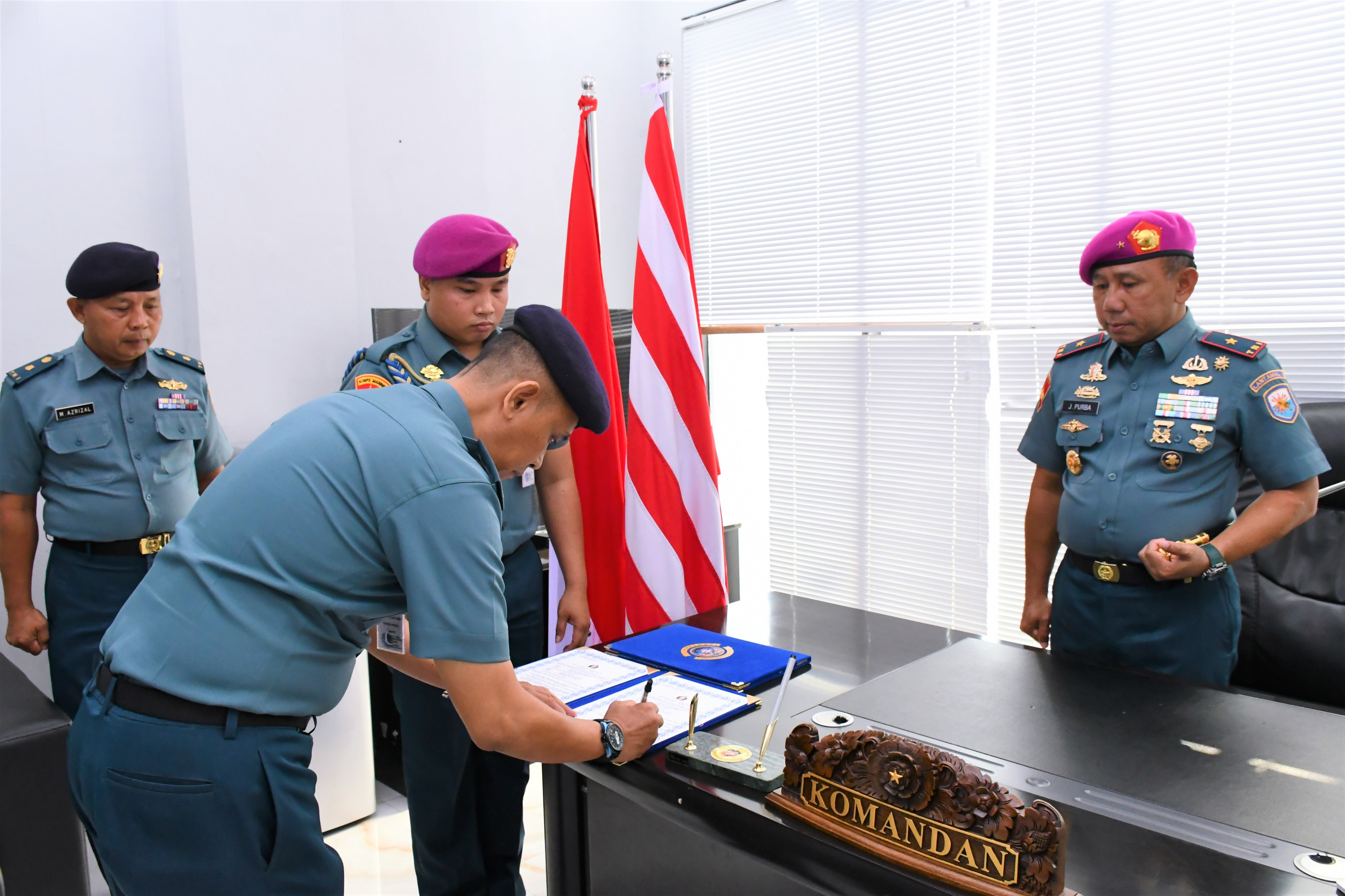 BELAWAN | POROSNUSANTARA.COM – Komandan Pangkalan Utama TNI Angkatan Laut I (Danlantamal I) Brigjen TNI (Mar) Jasiman Purba, S.E., CHRMP., memimpin acara Penyerahan Jabatan Kafasharkan Lantamal I dan Kadisang Lantamal I dari Letkol Laut (T) Agus Gunardi dan Letkol Laut (T) Akhmad Yani Meyansyah kepada Komandan Lantamal I, bertempat di Ruang Kerja Komandan Lantamal I, Jalan Serma Hanafiah No. 01 Belawan, Sumatera Utara, Rabu (20/3/2024).
