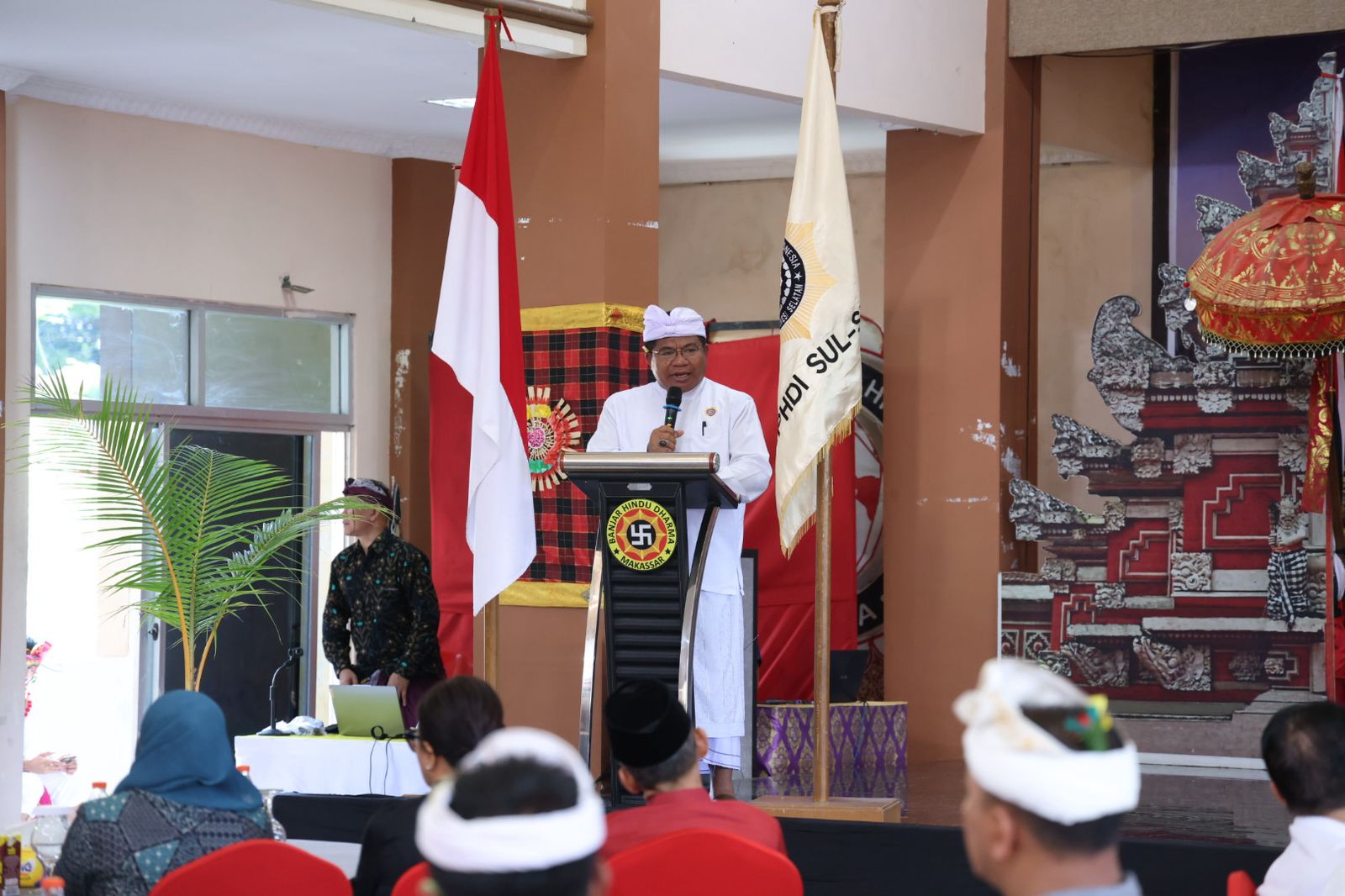Kegiatan yang mengangkat tema “Manawasesa, Madhawasesa: Mewujudkan Indonesia Emas 2025” ini dipimpin oleh Ketua Parisada Hindu Dharma Indonesia (PHDI) Sulawesi Selatan Bapak Gede Durahman, serta dihadiri oleh kurang lebih 100 orang tamu undangan dari berbagai unsur pemerintahan dan masyarakat.