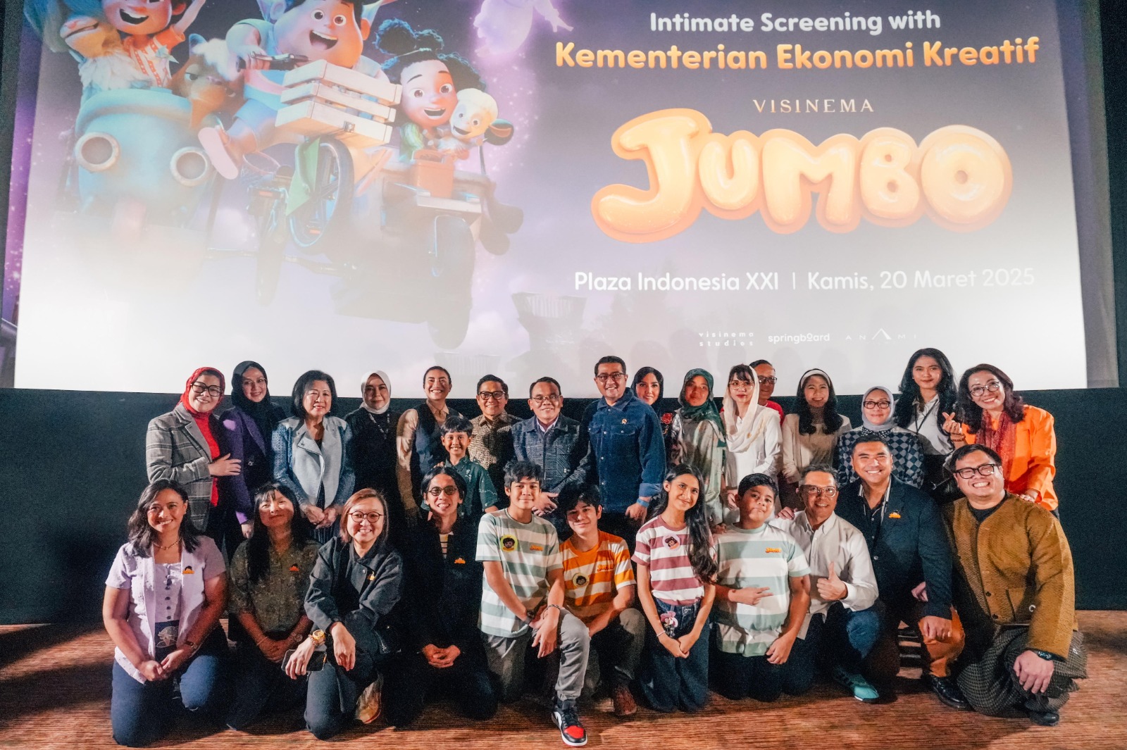 Jakarta, porosnusantara.com- 20 Maret 2025 – Kementerian Ekonomi Kreatif/Badan Ekonomi Kreatif berkolaborasi dengan Visinema menggelar acara nonton bareng film animasi Jumbo bersama sejumlah menteri Kabinet Merah Putih. Acara yang di gelar pada Kamis, 20 Maret 2025 di Plaza Indonesia XXI ini turut dihadiri pimpinan dan anggota Komisi VII DPR RI.