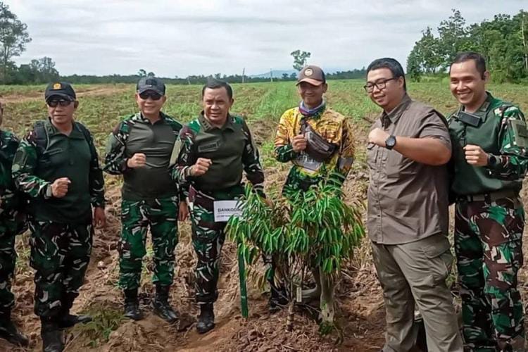 Komandan Kodiklatad, Letjen TNI Mohamad Hasan didampingi Danpuslatpur Kodiklatad, Brigjen TNI Dany Rakca S.A.P. M.Han.,memimpin kegiatan penanaman singkong bersama masyarakat dalam rangka mendukung program ketahanan pangan Nasional, kegiatan berlangsung di Dusun Batu Ladong, Desa Way Heling, Kecamatan Lengkiti, Kabupaten OKU, Kamis (20/2/2025)