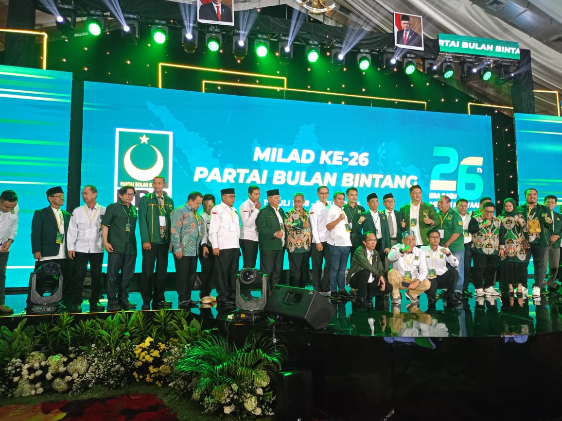 Partai Bulan Bintang (PBB) menggelar acara Milad ke-26 di Hotel Sultan, Jakarta, Sabtu (3/8/2024). PBB percaya diri bisa menembus DPR RI pada Pemilu 2029 mendatang.