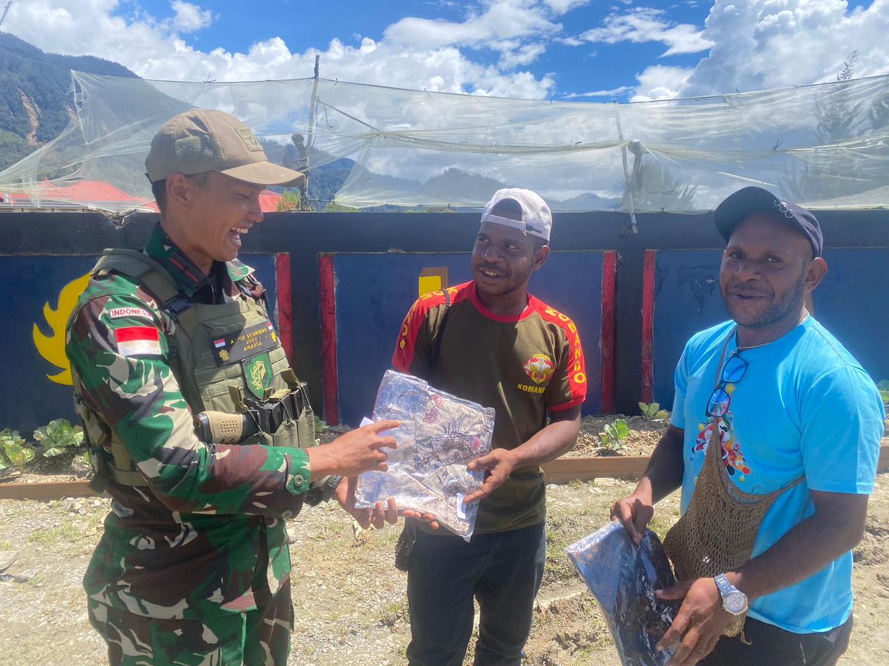 INTAN JAYA | POROSNUSANTARA.COM –Berikan bantuan dana biaya sekolah dan pakaian, Satgas Yonif 509 Kostrad peduli generasi muda Papua, kegiatan yang dilaksanakan di Pos Kodim Persiapan, Minggu (28/04/24).