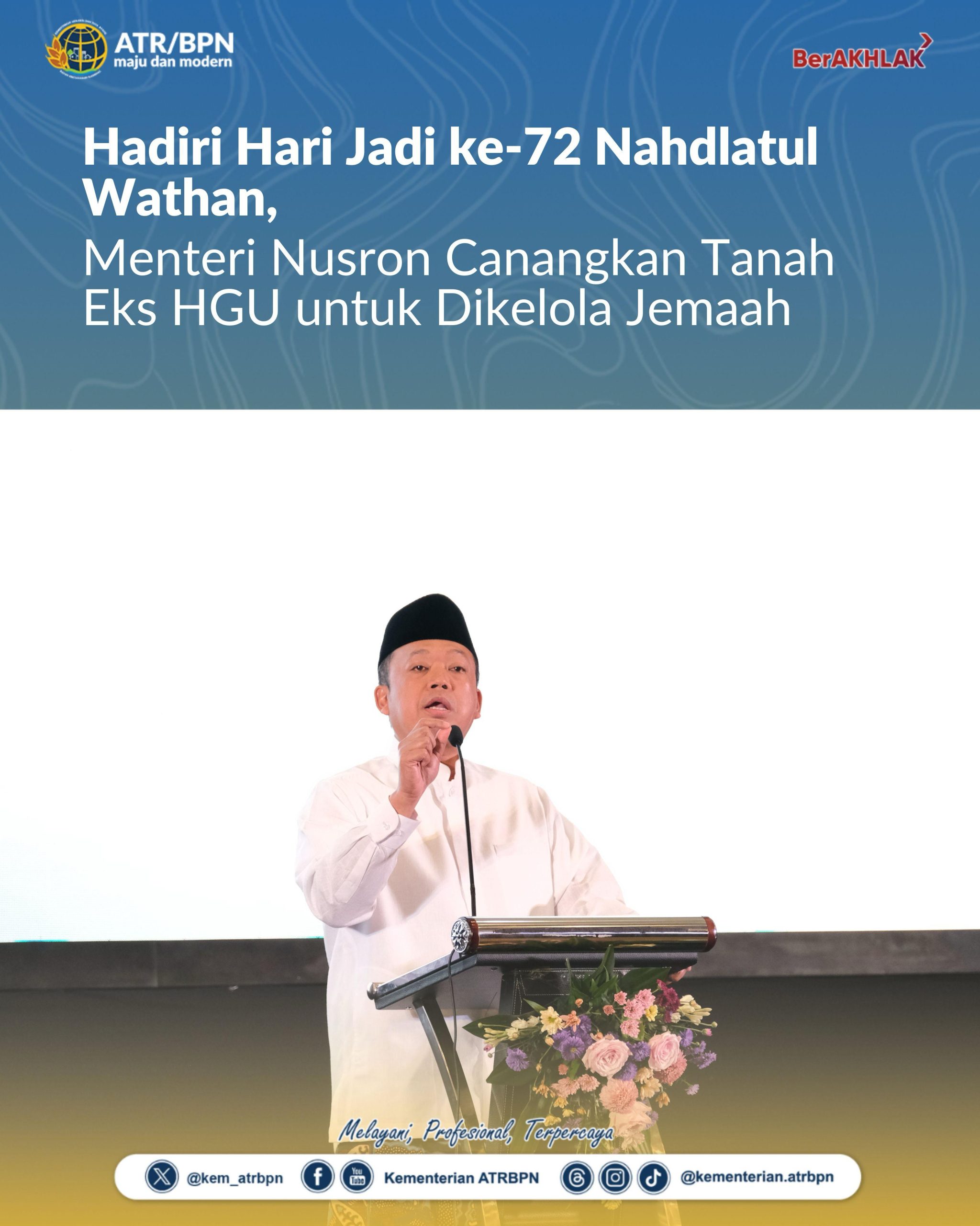 Hadiri Hari Jadi ke-72 Nahdlatul Wathan, Menteri Nusron Canangkan Tanah Eks HGU untuk Dikelola Jemaah