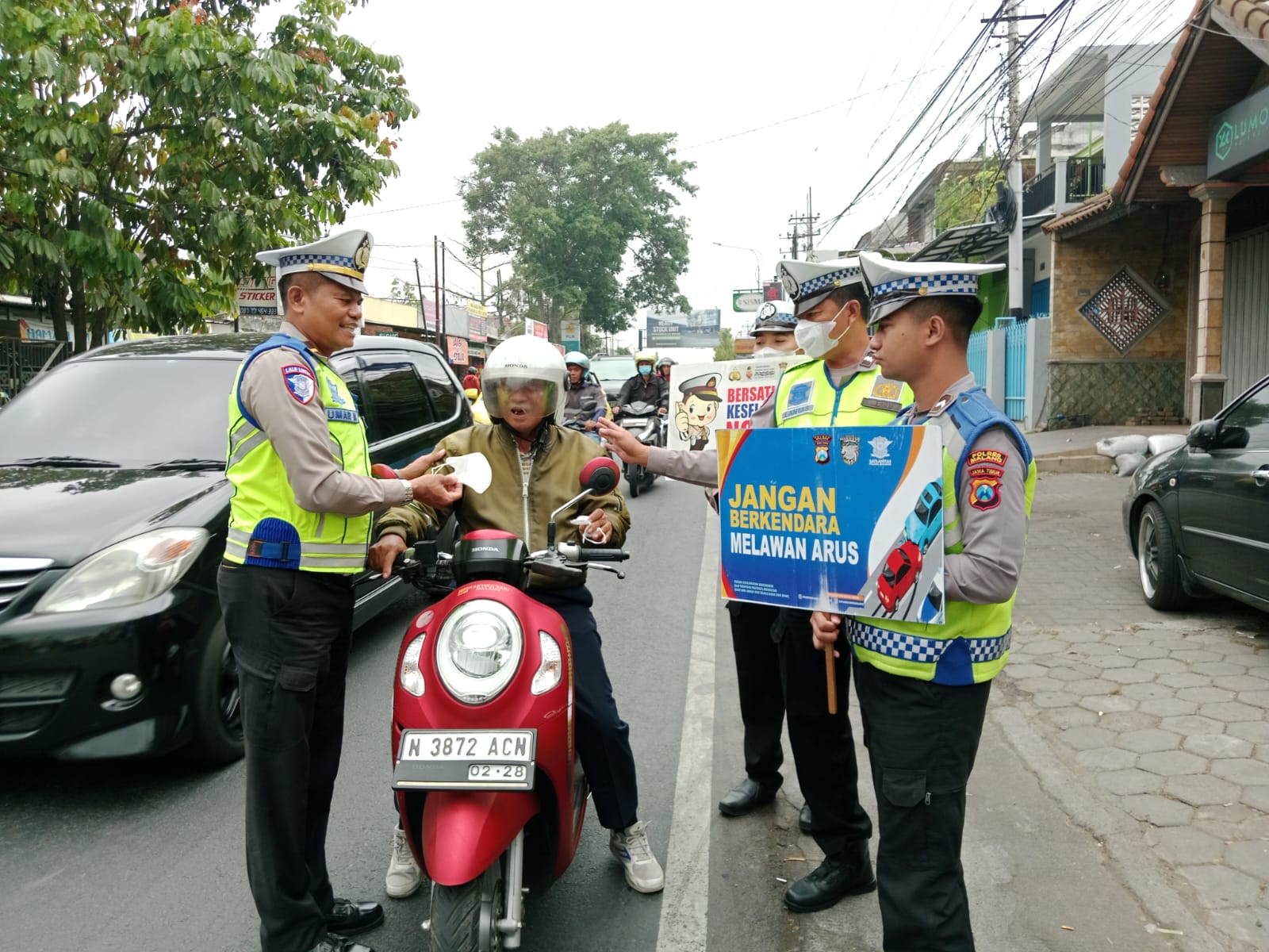 Ingatkan Tidak Melawan Arus, Sat Lantas Polres Malang Laksanakan Himbauan Kamseltibcarlantas Secara Humanis