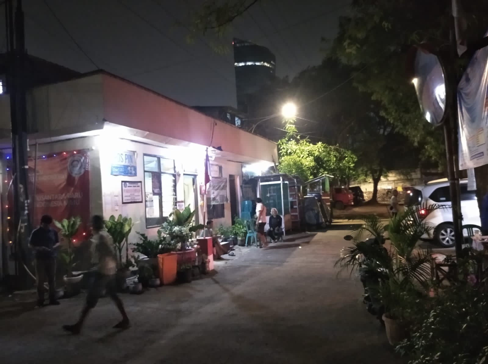 skamling RW 09 Jalan Administrasi II RT 09 RW 09 Kelurahan Petamburan Kecamatan Tanah Abang Jakarta Pusat, Aipda Ginanjar Bhabinkamtibmas Kelurahan Petamburan Patroli dialogis dan kunjungi Poskamling Malam Hari. Sabtu (28/09/2024).