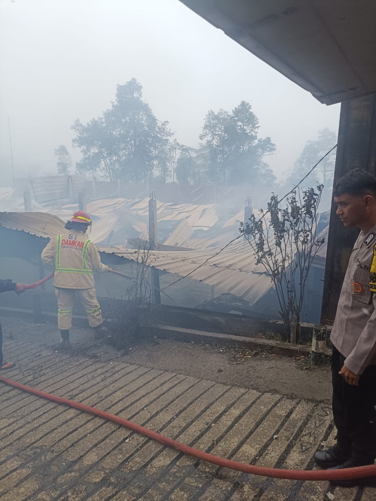“Api baru berhasil dijinakkan sekitar pukul 11.40 WIB karena luasnya bangunan dan banyaknya material mudah terbakar di lokasi,” terang Kasatpol PP Kabupaten Malang.