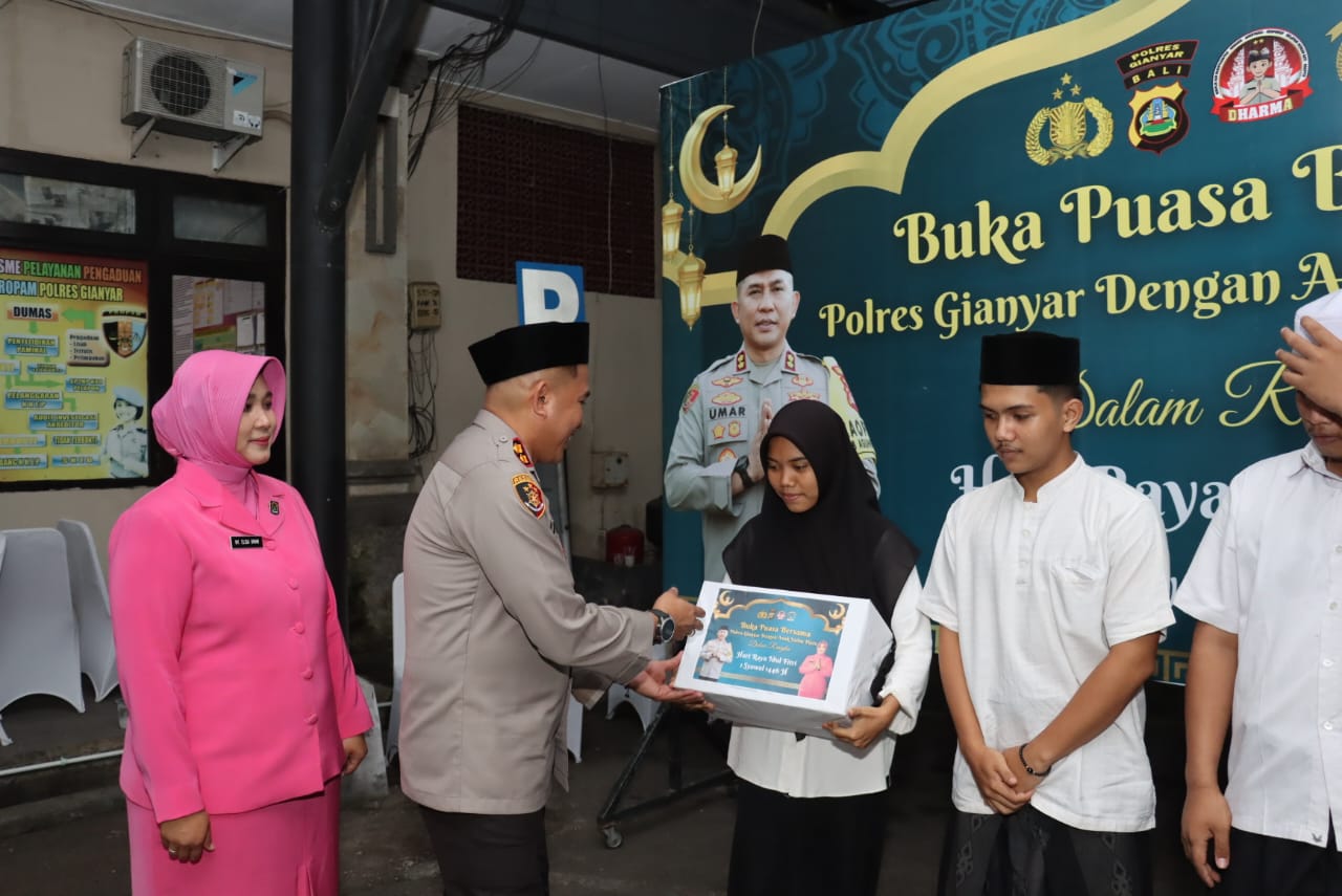 Kegiatan diawali dengan doa bersama pada pukul 18.30 wita, dilanjutkan dengan buka puasa bersama. Setelah itu, Kapolres Gianyar didampingi Ketua Bhayangkari Cabang Gianyar menyerahkan bingkisan kepada anak-anak yatim piatu sebagai bentuk perhatian dan kasih sayang dari jajaran Polres Gianyar.
