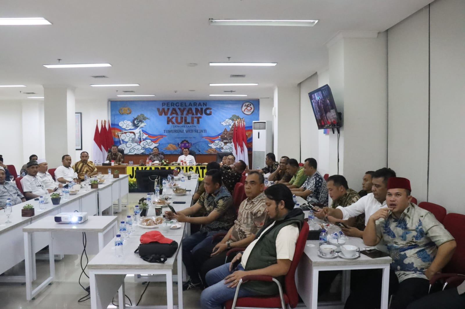 Jakarta | POROSNUSANTARA.COM – Kapolres Metro Jakarta Pusat Kombes Pol Susatyo Purnomo Condro bersama PJU, anggota, Forkopimkot, Tokoh Masyarakat dan Komunitas Pecinta Wayang menyaksikan pagelaran Wayang Kulit dalam rangka memperingati hari Bhayangkara ke-78 tahun 2024 secara virtual di aula lantai 3 Polrestro Jakpus, Jum’at pukul 20.00 Wib sampai selesai (5/7/2024).