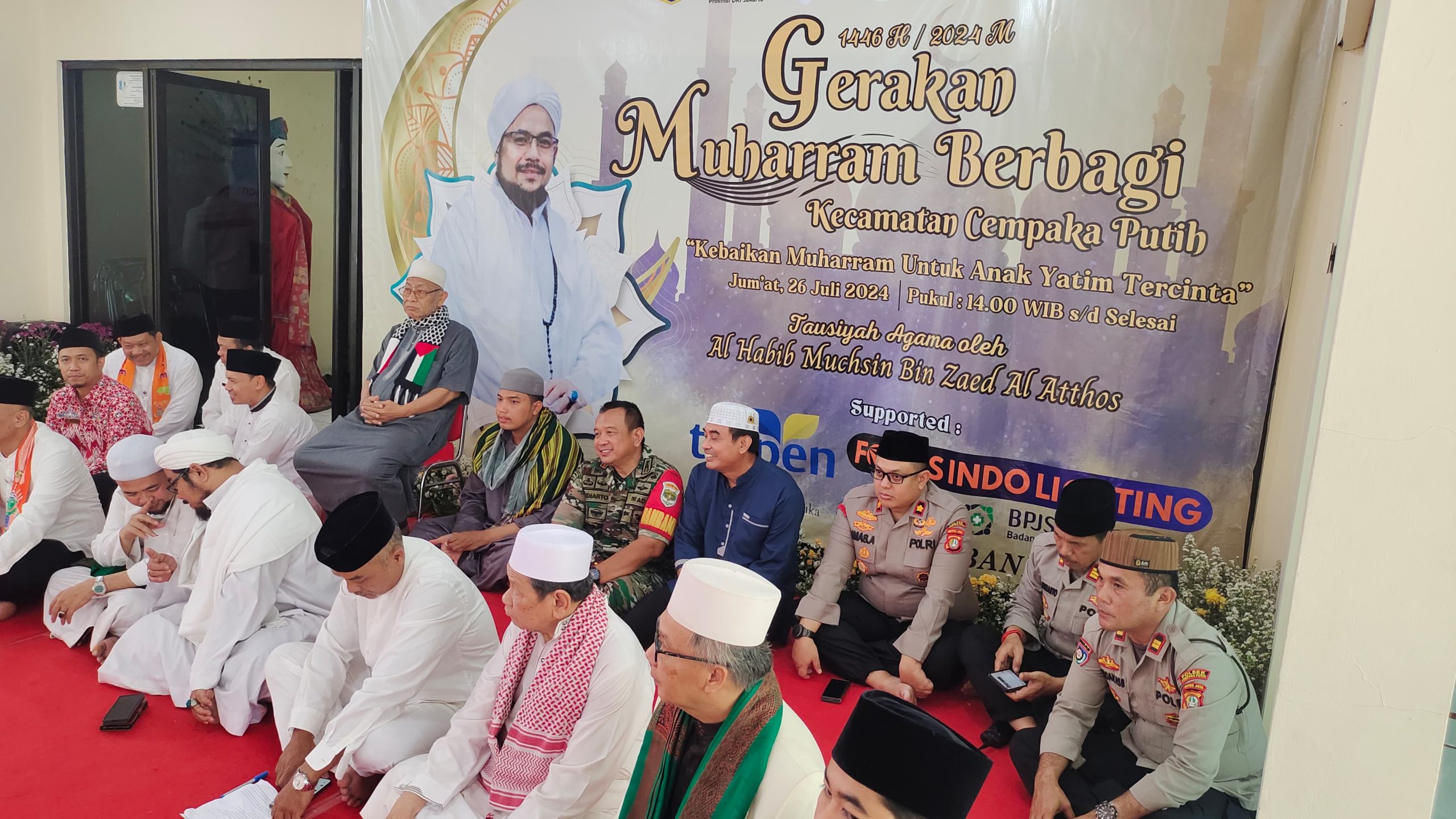 JAKARTA | POROSNUSANTARA.COM – Kapolsek Cempaka Putih Kompol Dimas Aditya, S.T., S.I.K bersama Wakapolsek Cempaka Putih AKP Moh. Winarto, Kanit Binmas Polsek Cempaka Putih Iptu Mara Oloan Hasibuan dan Anggota Binmas menghadiri acara Gerakan Muharam Berbagi Kecamatan Cempaka Putih di Kantor Kecamatan Cempaka Putih. Jumat (26/7/2024)