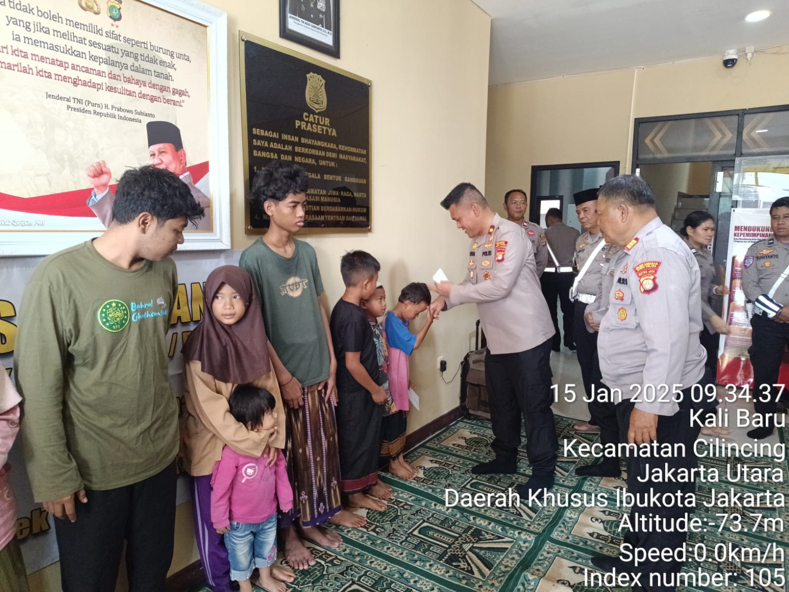JAKARTA UTARA | POROSNUSANTARA.COM – Kapolsek Kawasan Kali Baru KOMPOL Bagin Efrata Barus S.Pd., S.I.K., kembali mengukuhkan komitmennya terhadap kepedulian sosial dengan menggelar kegiatan santunan kepada anak-anak yatim piatu dan pengajian. Acara yang penuh makna ini dilaksanakan pada Rabu (15/1/2025) di Mapolsek Kawasan Kali Baru,Jakarta Utara dengan suasana penuh kebersamaan dan kekhidmatan.
