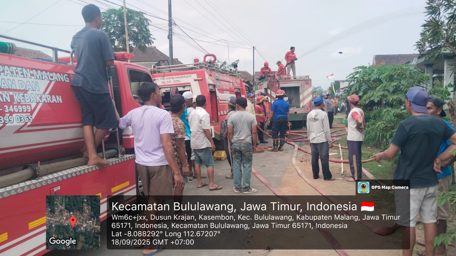 Kejadian kebakaran berlangsung sekitar pukul 11.30 WIB. Informasi diterima oleh petugas pada pukul 12.00 WIB, dan tim pemadam kebakaran Kabupaten Malang segera bergerak ke lokasi pukul 12.06 WIB. Dua unit mobil Damkar Kabupaten Malang, satu unit bantuan dari PG Krebet, serta personel Polsek Bululawang, BPBD, dan Relawan Redkar diterjunkan.