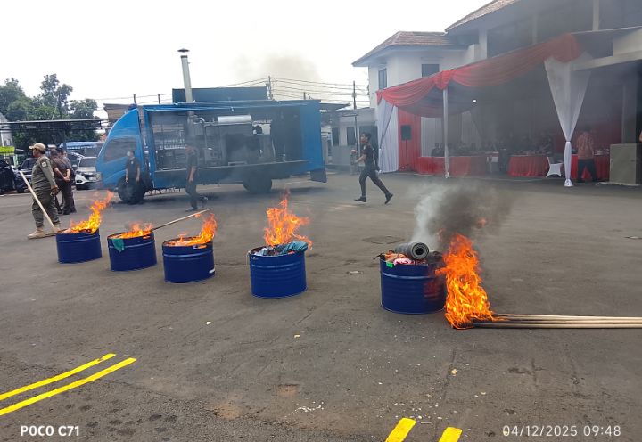 Semua barang bukti dimusnahkan melalui pembakaran dan penggilasan sebagai langkah menghilangkan fungsi sepenuhnya.
