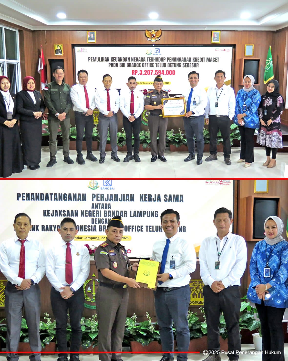 BANDAR LAMPUNG |Porosnusantara – Kejaksaan Negeri (Kejari) Bandar Lampung menandatangani Perjanjian Kerja Sama (PKS) dengan PT Bank BRI Cabang Tanjung Karang dan PT BRI Branch Office (BO) Teluk Betung tentang penanganan hukum di bidang Perdata dan Tata Usaha Negara (Datun).