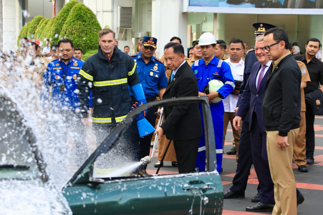 Dalam pertemuan itu, Mendagri menyaksikan langsung demonstrasi penggunaan teknologi Firexpress, yakni sistem pemadam kebakaran bertekanan tinggi asal Denmark. Alat ini dikenal karena kemampuannya memadamkan api secara cepat dan efisien dengan penggunaan air yang sangat hemat. Bahkan, Mendagri maupun Menlu Denmark juga sempat menjajal alat tersebut.